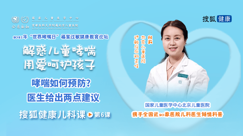 前言:儿童哮喘容易反复发作,属于难治疾病之一,许多家长爱娃心切,却不知道该怎么办,走了不少弯路,也耽误了孩子的治疗。在第23个世界哮喘日来临之际,搜狐健康与国家儿童医学中心北京儿童医院合作,针对常见的儿童哮喘问题,携手全国各地儿童医院儿科专家为您倾情科普。